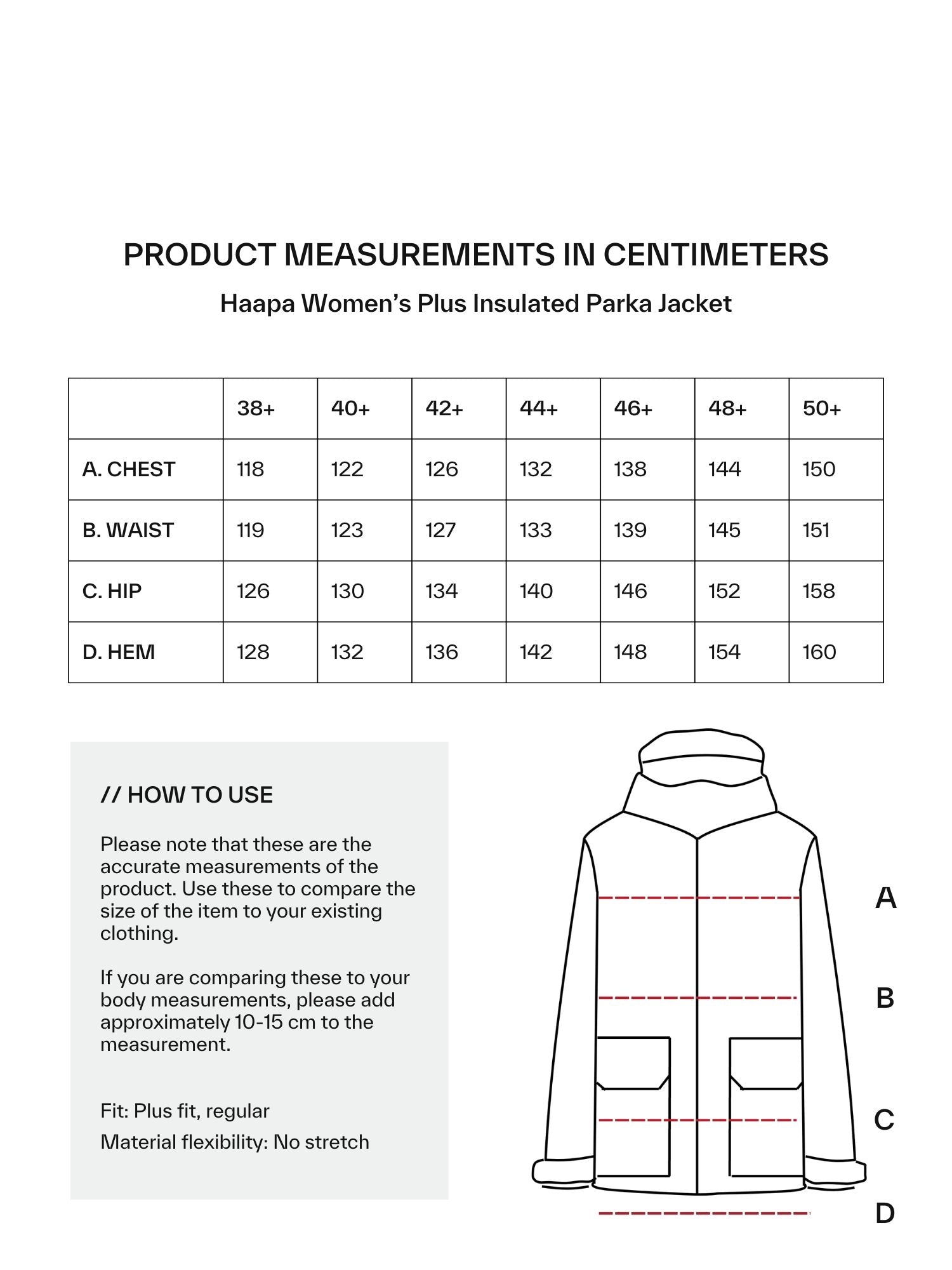 Haltin plus-mitoitus on naisten erikoismitoitus, joka ottaa huomioon naisten erilaiset vartalon muodot. Normaalimitoitukseen verrattuna, plus-mitoitukseen on tuotu lisää väljyyttä rinnan, vyötärön ja lantion alueille ilman, että pituutta tulee lisää.