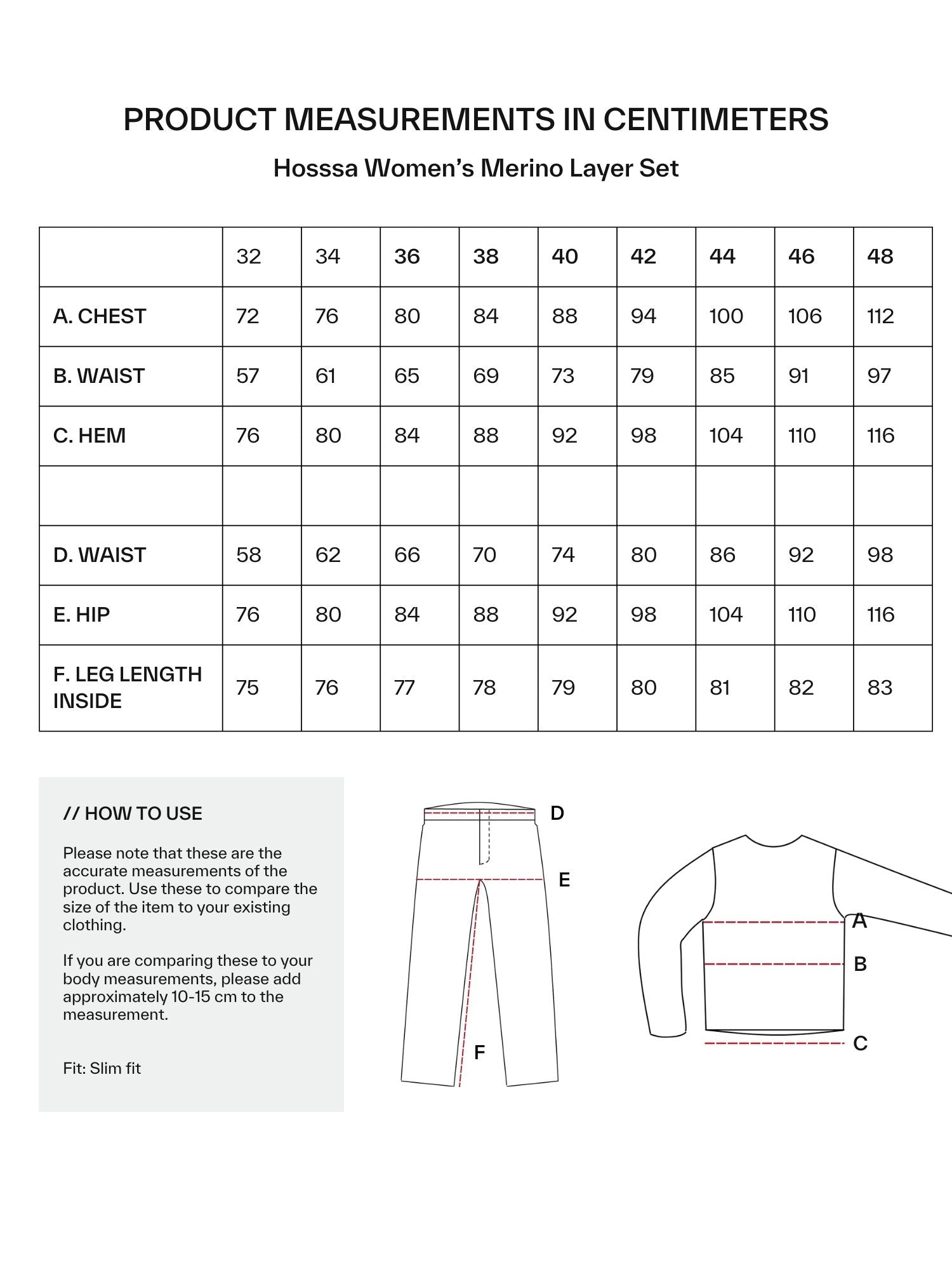 Koon valinta: Hossa Merinovillakerrasto on malliltaan reilumpi, joten suosittelemme valitsemaan pienemmän koon, jos toivot kerrastosta istuvampaa. Katso kokotaulukko, jos et ole varma koostasi.