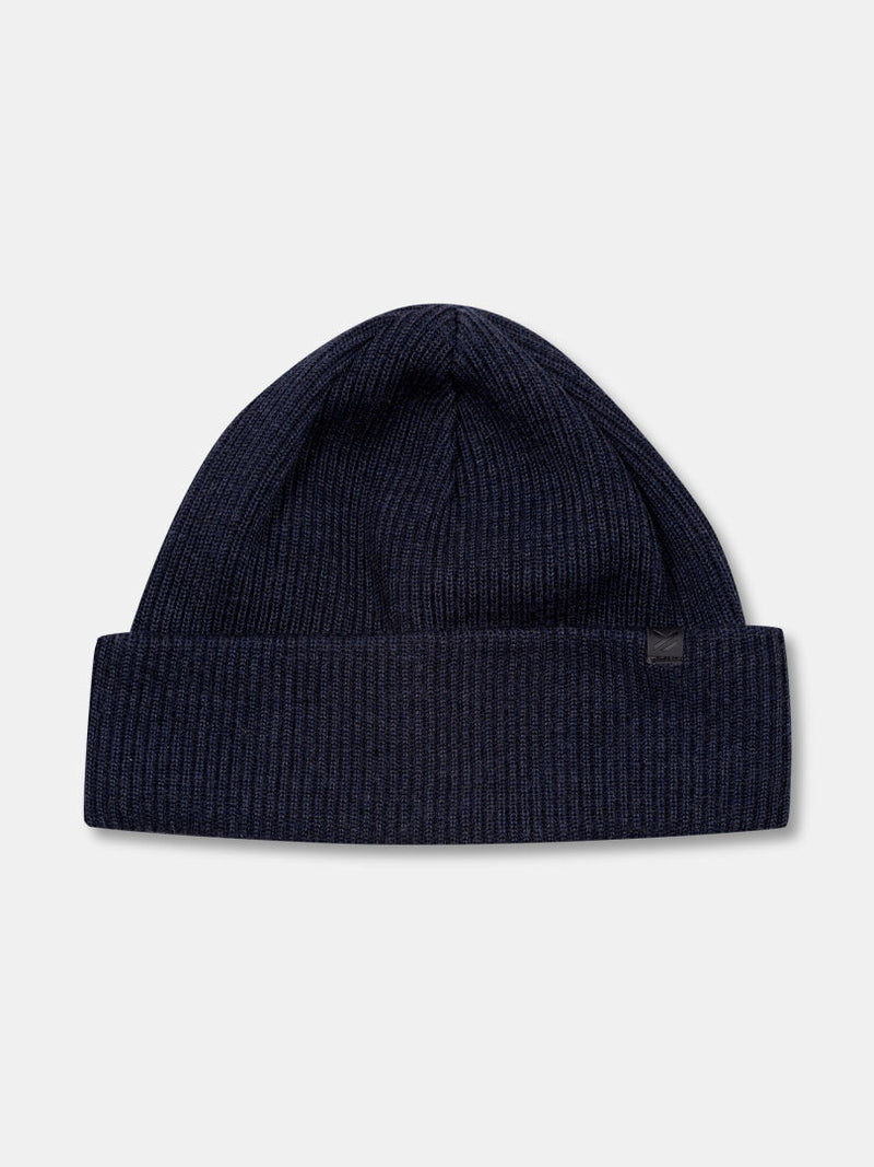 Halti Pehmee Merinopipo unisex tummansininen pipo, jossa on taitettu reunus, on kuvassa vaaleanharmaalla pohjalla.