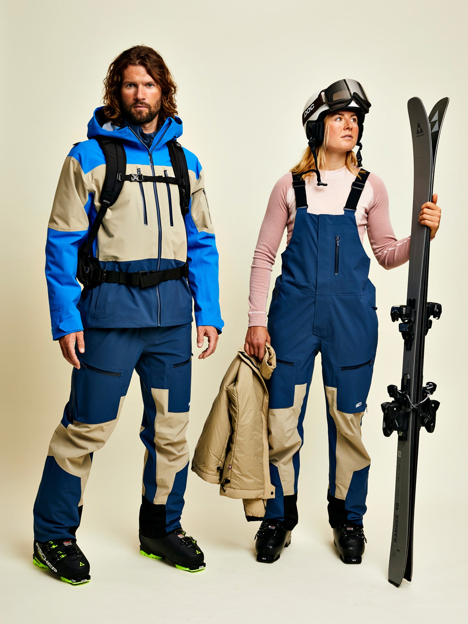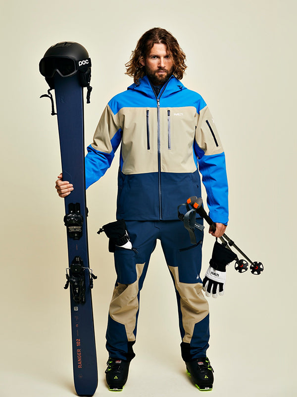 Unisex Rizle 3L DrymaxX® -setti on tehty vaativiin olosuhteisiin, niin nousuihin kuin laskuihin. Materiaali on Bluesign® -hyväksyttyä, 52 % kierrätettyä polyesteriä, ja siinä on 42 % kasvipohjainen, PFAS-säädösten mukainen DWR-käsittely. Suorituskyvystä kertovat 25 000 mm vedenpitävyys ja 20 000 g/m²/24 h hengittävyys sekä toiminnalliset yksityiskohdat kuten Primaloft® Thermo -paneelit selässä, lumilukot, tuuletusvetoketjut ja bib-rakenne housuissa.