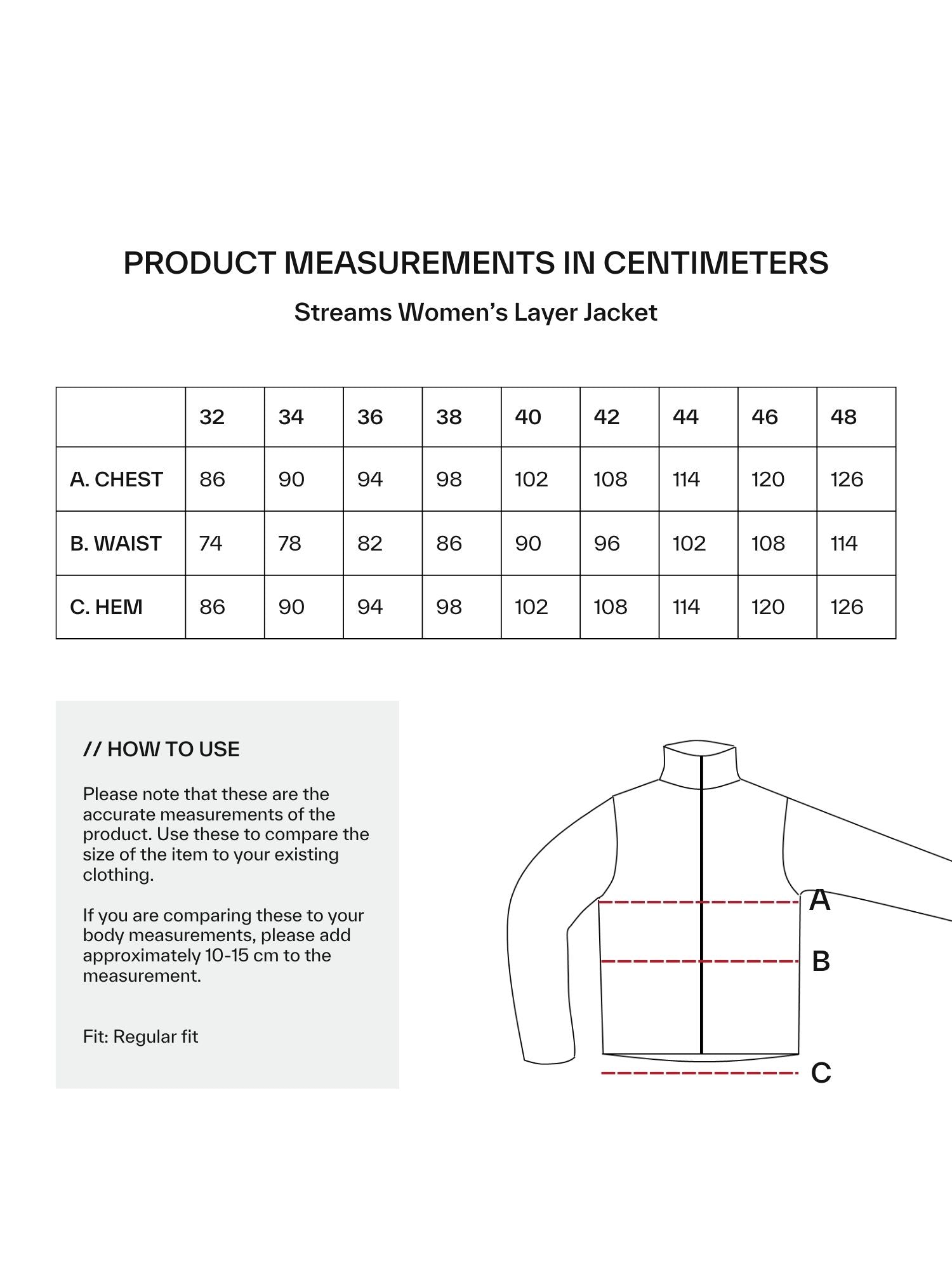 Takissa on lämmin fleecemateriaali, vetoketjulliset taskut ja kiristettävä helma ovat käytännölliset ja tuovat mukavuutta käyttöön. Takin sisäpuoli on pehmeäksi harjattu. Streams välitakki on suunniteltu monipuoliseen käyttöön.