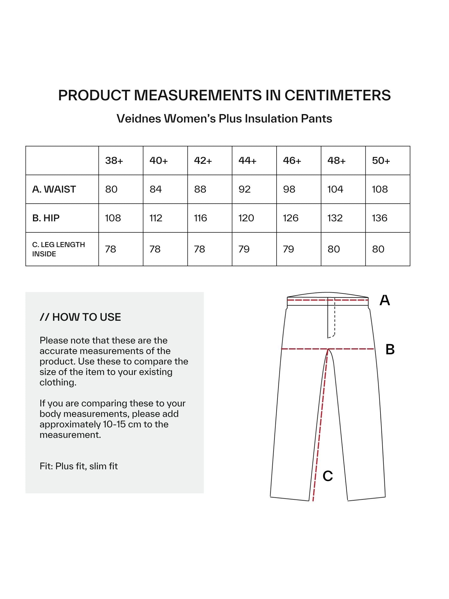 Slim fit ja Plus size