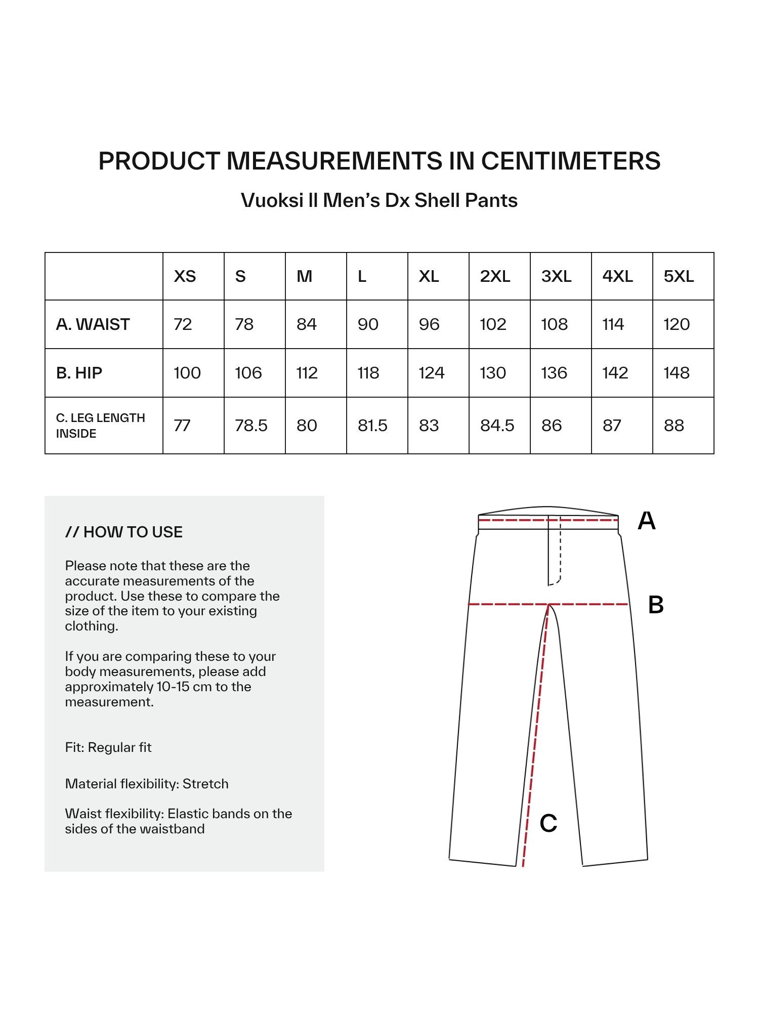 Päivitetty versio Haltin klassisista Vuoksi ulkoiluhousuista tarjoaa selkeän designin ja entistä paremmat tekniset ominaisuudet. Joustava materiaali takaa hyvän istuvuuden, ja vyölenkit, vetoketjulliset taskut sekä kiristettävät lahkeensuut tekevät housuista toimivan parin minkä tahansa Halti-takin kanssa.